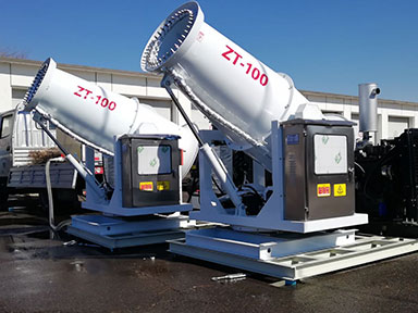 120米車載式霧炮機(jī)用于施工現(xiàn)場(chǎng)降塵作業(yè)